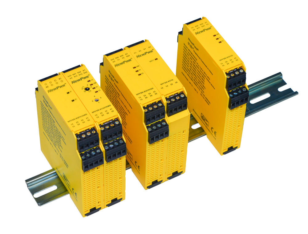 The inputs of K series E-STOP, safety gate, safety light curtain input safety relays are normally closed contact signals, which are used for emergency braking or the protection of people entering dangerous areas, and widely used in machining and other industries. Main features: 1oo2 architecture; With detection of shorts across contacts; With auto reset and manual reset function;The safety function remains effective in the case of a component failure;The correct opening and closing of the safety function relays is tested automatically in each on-off cycle.
