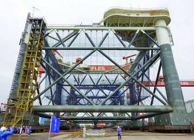 5月15日,由中集來福士海洋工程有限公司設計建造的“經海001號”深海智能網箱在山東省龍口市交付。“經海001號”是亞洲最大的量產型深海智能網箱,通過自動投喂、水下監測、水下洗網等設備,實現了網箱平臺養殖的自動化、智能化。唐克攝/光明圖片