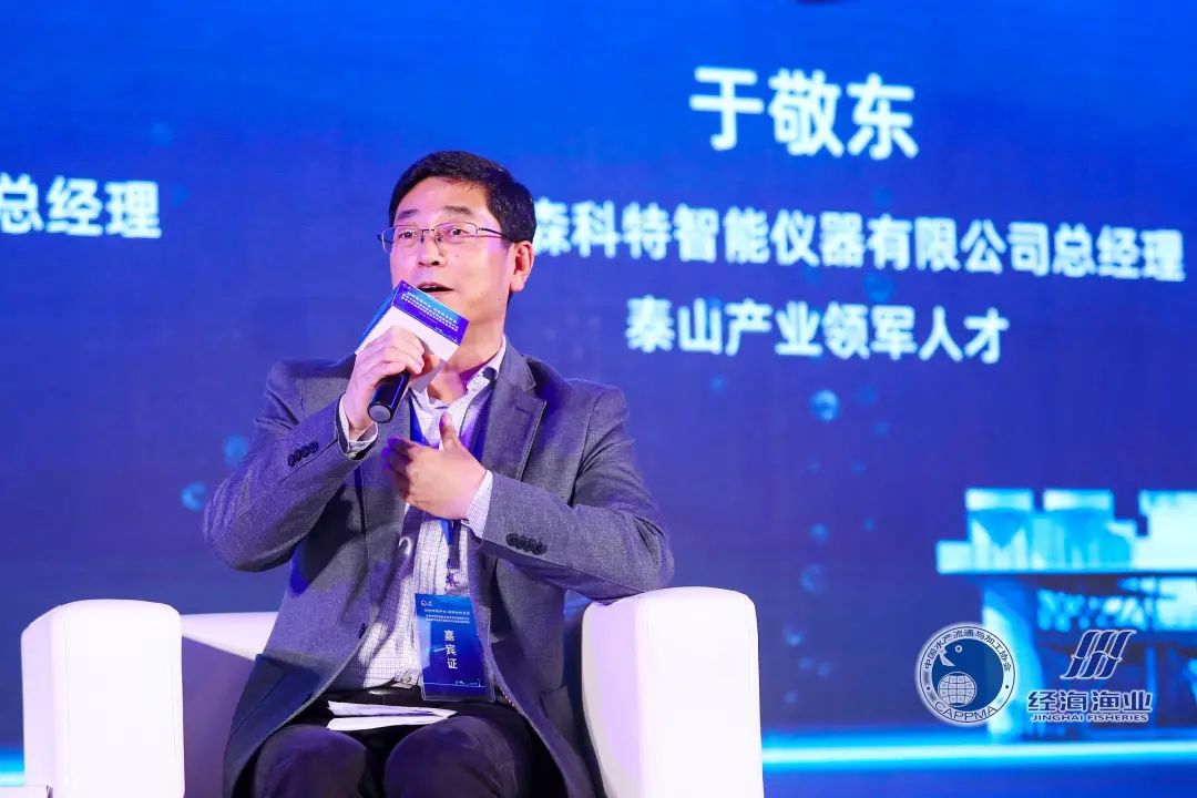 青島森科特智能儀器有限公司總經理于敬東先生對水下生物監測系統進行了介紹。并表示智能化、智慧化的設備,對推動海洋牧場發展、海上糧倉的發展都有非常積極的推動作用。