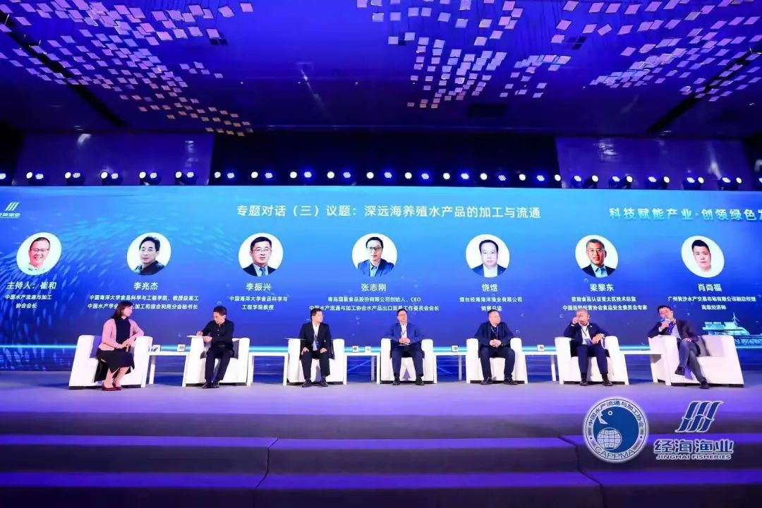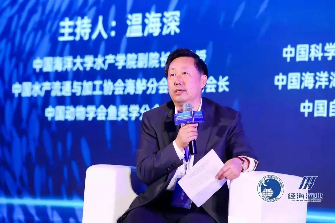 會議在中國水產科學研究院、山東省農業農村廳指導下,由中國水產流通與加工協會和煙臺市人民政府共同主辦,煙臺經濟技術開發區管理委員會、中國(山東)自由貿易試驗區煙臺片區管理委員會、煙臺市海洋發展和漁業局、煙臺經海海洋漁業有限公司承辦,得到了國家海水魚產業技術體系、國家貝類產業技術體系、中國新農科水產聯盟的技術指導。農業農村部漁業漁政管理局一級巡視員李書民,中國水產科學研究院副院長鄧偉,中國工程院院士、中國海洋大學教授、水產動物營養與飼料學專家麥康森,中國工程院院士、國家海洋腐蝕防護工程技術研究中心主任侯保榮,挪威技術科學院院士、上海交通大學特聘教授、船舶與海洋工程專家付世曉,山東省農業農村廳黨組成員、副廳長王敬東,煙臺市副市長牟樹青,中國水產流通與加工協會會長崔和等嘉賓出席活動。研討會吸引來自國內政府主管部門、科研機構,以及行業龍頭企業的代表約240余人與會。