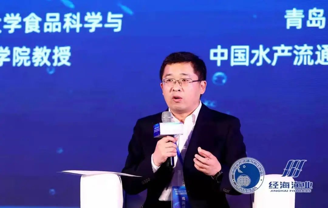 中國水產流通與加工協會會長崔和就深遠海養殖水產品的加工與流通做先導報告。崔和會長講到當下水產品消費趨勢有所轉變,未來將有更多高品質的水產品進入市場。受2020年新冠疫情影響,水產加工品和調理產品需求量快速增長。