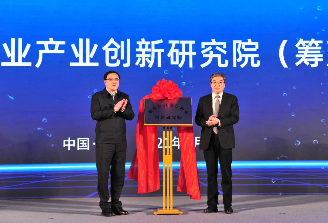 山東省農(nóng)業(yè)農(nóng)村廳黨組成員、副廳長王敬東,煙臺市副市長、開發(fā)區(qū)工委書記、管委主任牟樹青共同為“煙臺經(jīng)海藍色種業(yè)創(chuàng)新研究院”揭牌