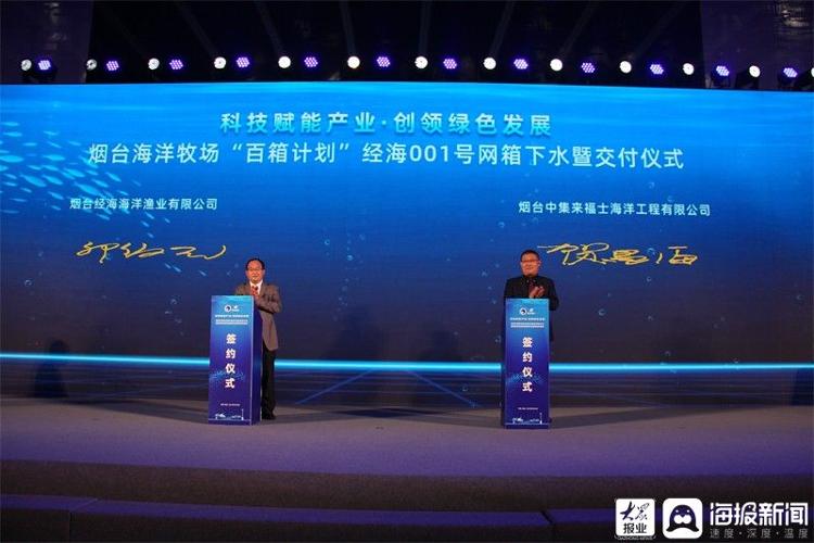 煙臺海洋牧場“百箱計劃”經(jīng)海001號網(wǎng)箱下水暨交付儀式