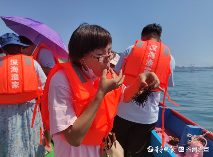 邂逅海上桃花源,一睹海島最美風光。7月24日-25日,2021齊魯晚報·齊魯壹點全省年中粉絲節在長島綜試區南隍城島舉辦,全省百名壹粉齊聚。7月25日一到早,其中70多名壹粉乘船出海,在海天一色間體驗海上捕撈的樂趣。即捕即食,新鮮肥美的海膽讓來自山東各地的壹粉興奮不已,大家直呼“又鮮又肥,生吃海膽太帶勁了”。
