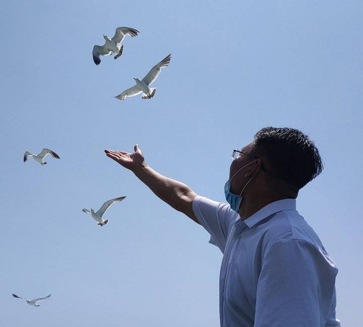 跟著2021齊魯壹點年中粉絲節第一次踏上南隍城島,海天一色間,成群結隊的海鷗與游客親密互動,和水母第一次親密“接觸”以及感受海島夜晚的靜謐與美好,都給他留下了難忘的回憶。