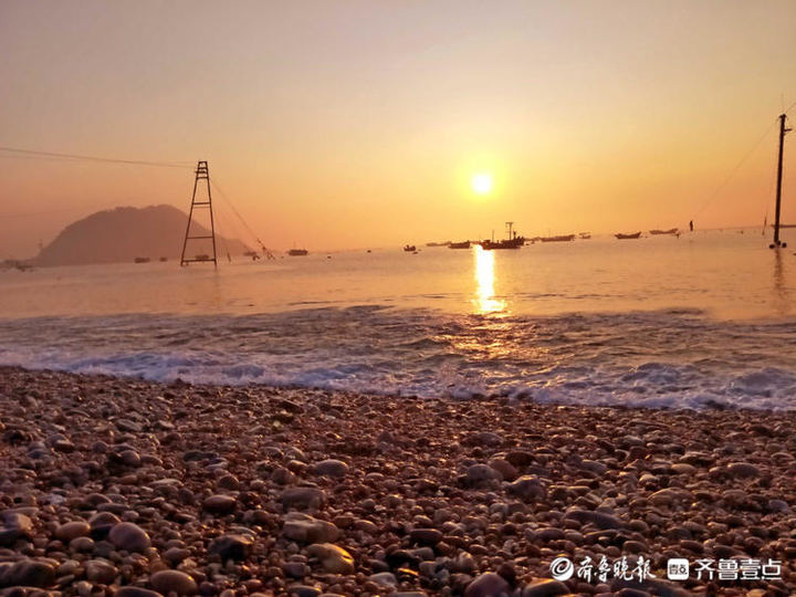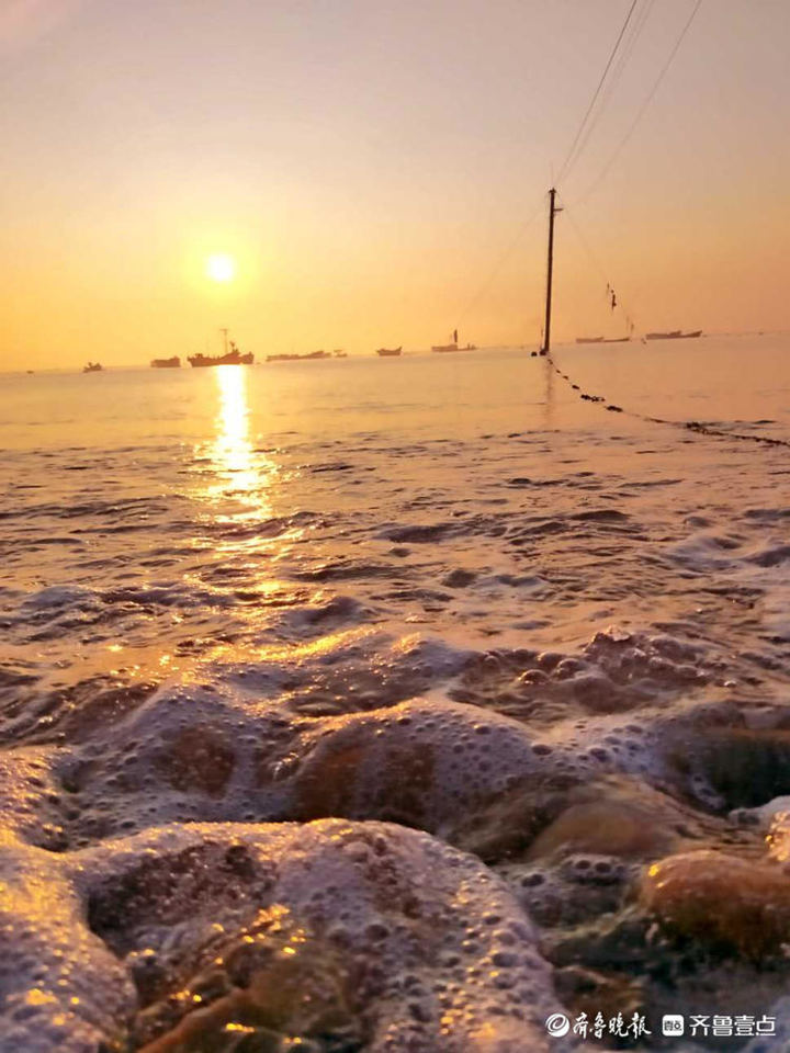 南隍城的清晨,太陽(yáng)從東方慢慢升起,天邊被染成了金黃色,海面波光粼粼,海天一色,炫麗無(wú)比。