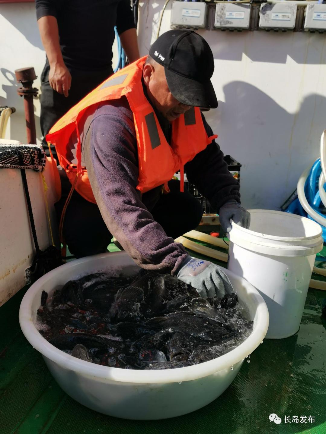 “經海001號”是煙臺市海洋牧場“百箱計劃”首座深海智能網箱,總投資7000萬元,養殖包圍水體約7萬立方米。今年6月2日,“經海001號”在南隍城島海域安家后,5日公司就派出活體船在當地收購了36噸漁民養殖的許氏平鲉魚苗,放至深水網箱進行接力養殖。