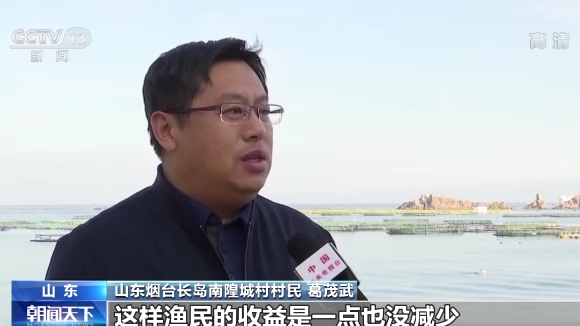山東煙臺長島南隍城村村民 葛茂武:半斤的魚到一斤的魚養成是交給企業去做,這樣漁民的收益是一點也沒有減少,反倒增加了,而且風險也降低了。