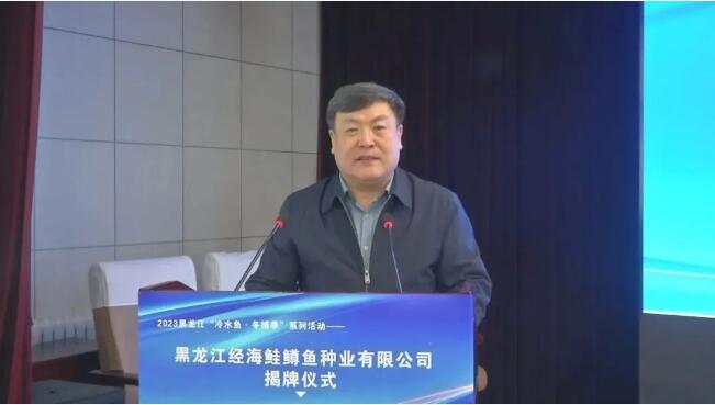 山東省農(nóng)業(yè)農(nóng)村廳副廳長(zhǎng)宋文華,黑龍江省農(nóng)業(yè)農(nóng)村廳副廳長(zhǎng)孫文志,分別代表兩省向黑龍江經(jīng)海鮭鱒魚種業(yè)公司揭牌成立表示祝賀,表示此次項(xiàng)目簽約是深入貫徹落實(shí)習(xí)近平總書記關(guān)于樹立大農(nóng)業(yè)觀、踐行大食物觀重要指示要求的積極舉措。希望新公司進(jìn)一步探索并開創(chuàng)國(guó)內(nèi)鮭鱒魚產(chǎn)業(yè)發(fā)展新路徑、新技術(shù)、新模式和新產(chǎn)品,推動(dòng)黑龍江省與山東省共同提升中國(guó)漁業(yè)現(xiàn)代化水平,積極打造國(guó)內(nèi)獨(dú)特領(lǐng)先的鮭鱒魚種質(zhì)生產(chǎn)基地,為兩省農(nóng)業(yè)產(chǎn)業(yè)振興發(fā)展提供強(qiáng)勁動(dòng)能和有力支撐。寧安市委副書記、市長(zhǎng)程亮在致辭中表示,將以黑龍江經(jīng)海鮭鱒魚種業(yè)公司成立為契機(jī),充分發(fā)揮鉆心湖漁業(yè)的優(yōu)質(zhì)產(chǎn)業(yè)資源優(yōu)勢(shì),借助煙臺(tái)經(jīng)海漁業(yè)的前端技術(shù)和產(chǎn)業(yè)聯(lián)盟優(yōu)勢(shì),聚合鮭鱒魚產(chǎn)業(yè)技術(shù)、渠道、市場(chǎng)等產(chǎn)業(yè)鏈優(yōu)秀資源,為企業(yè)提供優(yōu)質(zhì)的保障服務(wù)和寬松的投資環(huán)境,積極促進(jìn)鮭鱒魚養(yǎng)殖產(chǎn)業(yè)發(fā)展。