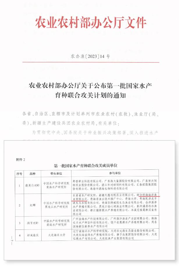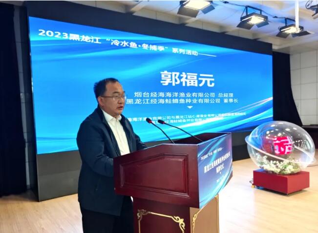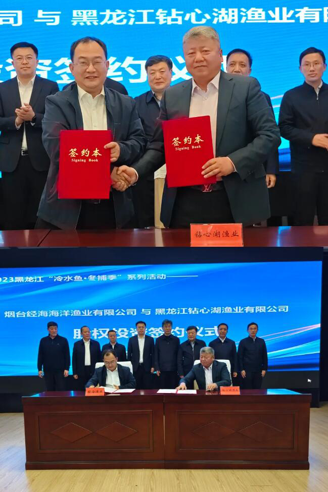 12月25日上午,煙臺(tái)經(jīng)海海洋漁業(yè)有限公司與黑龍江鉆心湖漁業(yè)有限公司合作項(xiàng)目簽約儀式及“黑龍江經(jīng)海鮭鱒魚種業(yè)有限公司”揭牌儀式在黑龍江省牡丹江市寧安市順利舉行。山東省農(nóng)業(yè)農(nóng)村廳副廳長(zhǎng)宋文華、黑龍江省農(nóng)業(yè)農(nóng)村廳副廳長(zhǎng)孫文志出席揭牌儀式并致辭。牡丹江農(nóng)業(yè)農(nóng)村局局長(zhǎng)吳永奎,煙臺(tái)市馬飛、孫華君、孫成列、張世巖等領(lǐng)導(dǎo)寧安市領(lǐng)導(dǎo)程亮、王孔彬、楊冬梅出席儀式,寧安市委常委、副市長(zhǎng)周浩主持揭牌儀式。煙臺(tái)經(jīng)海海洋漁業(yè)有限公司總經(jīng)理、黑龍江經(jīng)海鮭鱒魚種業(yè)公司董事長(zhǎng)郭福元及黑龍江經(jīng)海鮭鱒魚種業(yè)公司總經(jīng)理趙剛上臺(tái)致辭。