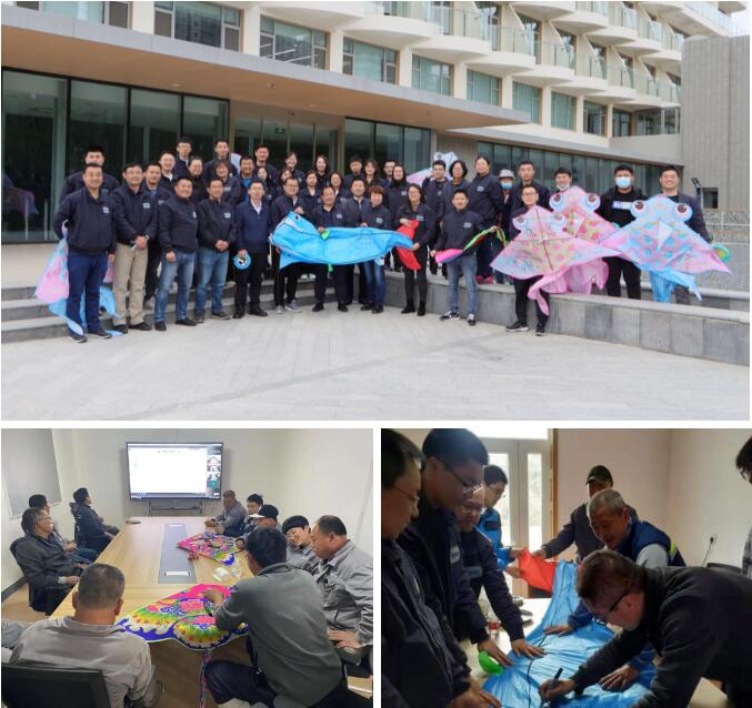 隨后,三基地員工共同在預備的風箏上寫下對公司未來的希冀與祝福,共同在海邊放飛“經海深藍夢想”。