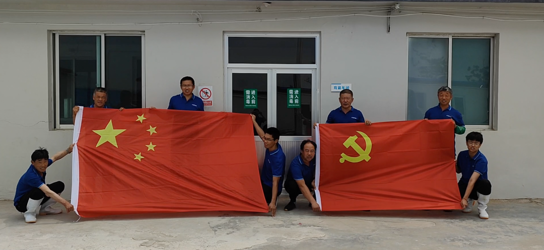 在金山灣育苗場,經海漁業全體員工以最飽滿的精神狀態為中國共產黨百年華誕送上祝福。