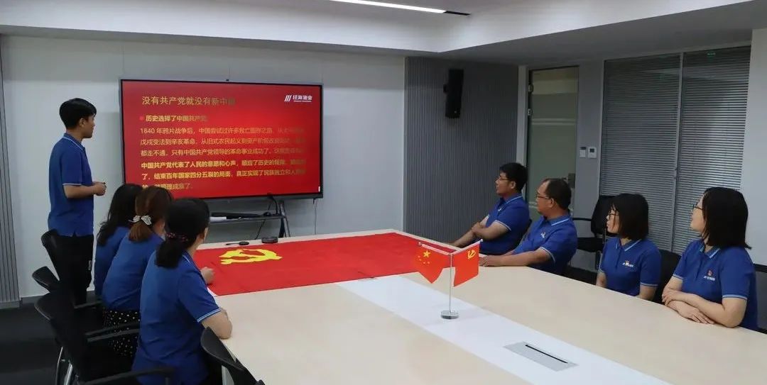 在經海漁業八角灣基地,在黨員及預備黨員的帶領下,基地員工共同學習了專題黨課,從“共產黨光輝100年”“沒有共產黨就沒有新中國”“只有共產黨才能發展中國”“中國特色社會主義道路是中國必由之路”四個篇章深入講解黨的百年歷史,賡續紅色血脈。