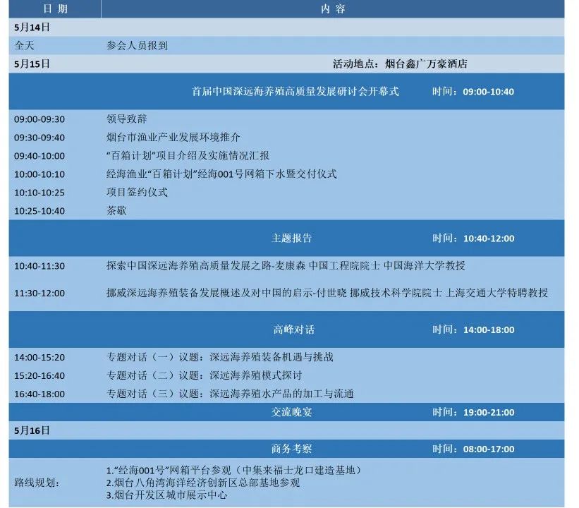 為貫徹落實(shí)黨的十九屆五中全會(huì)關(guān)于推動(dòng)綠色發(fā)展、加快發(fā)展方式升級(jí)的戰(zhàn)略部署和今年中央1號(hào)文件“推進(jìn)水產(chǎn)綠色健康養(yǎng)殖”的部署要求,進(jìn)一步落實(shí)經(jīng)國(guó)務(wù)院同意、十部委聯(lián)合印發(fā)的《關(guān)于加快推進(jìn)水產(chǎn)養(yǎng)殖業(yè)綠色發(fā)展的若干意見》相關(guān)要求,堅(jiān)持高質(zhì)量發(fā)展,探索深遠(yuǎn)海綠色養(yǎng)殖模式,建設(shè)深遠(yuǎn)海大型智能化養(yǎng)殖漁場(chǎng)。中國(guó)水產(chǎn)流通與加工協(xié)會(huì)、煙臺(tái)市人民政府主辦,煙臺(tái)市海洋發(fā)展和漁業(yè)局、煙臺(tái)經(jīng)濟(jì)技術(shù)開發(fā)區(qū)管理委員會(huì)、中國(guó)(山東)自由貿(mào)易試驗(yàn)區(qū)煙臺(tái)片區(qū)管理委員會(huì)、煙臺(tái)經(jīng)海海洋漁業(yè)有限公司承辦的“首屆中國(guó)深遠(yuǎn)海養(yǎng)殖高質(zhì)量發(fā)展研討會(huì)暨首期深遠(yuǎn)海養(yǎng)殖探索與實(shí)踐高級(jí)研修班”將于2021年5月14-16日在山東省煙臺(tái)市舉辦。