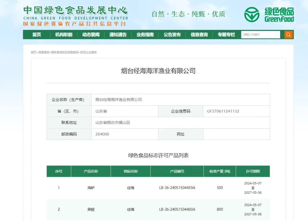此次“經海深海黑鲪”和“經海深海海鱸”獲得“綠色食品證書”,進一步完善了經海漁業質量管理體系的建設,同時標志著經海漁業在苗種管理、水環境管理、投入品管理、養殖過程管理、商品魚的質量管理等方面均達到了綠色食品標準的要求。