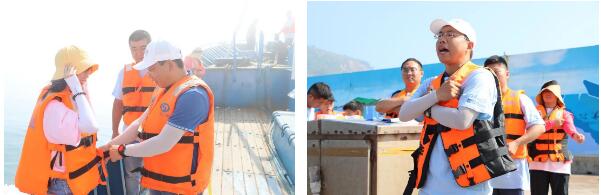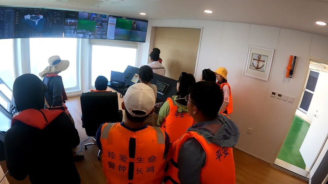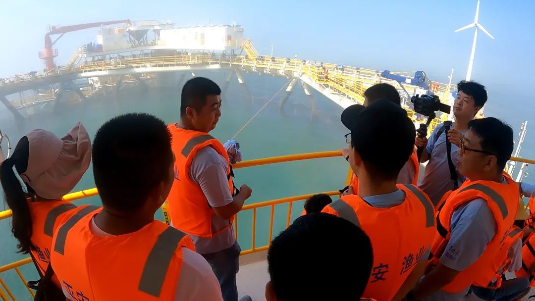 25日上午,在經海漁業專業安全員為登平臺的齊魯壹粉做完安全培訓之后,大家登上“經海001號”智能網箱平臺參觀參觀。在經海漁業網箱平臺工作人員的帶領解說下,紛紛贊嘆科技力量為現代漁業帶來的變化!