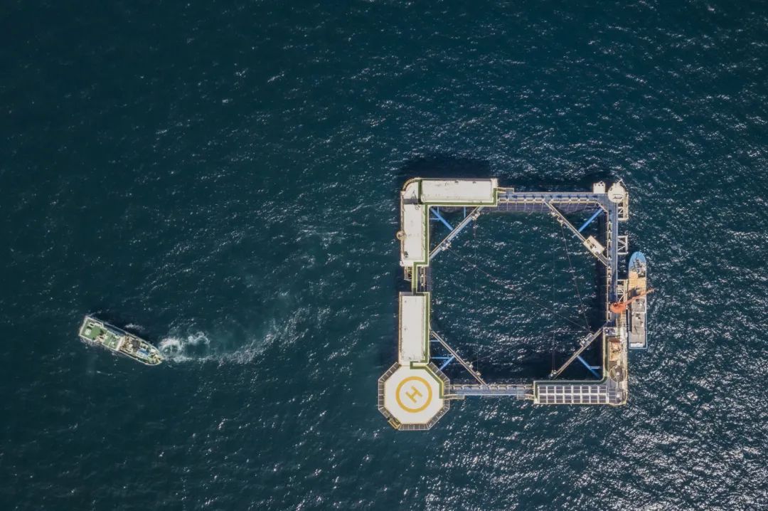 當前,該網箱中養著新一批海水虹鱒,約20萬尾,預計今年6月出魚上市。據悉,這是國內虹鱒“陸-海-島”接力養殖新模式探索得到市場驗證、并實現商業化量產的首批海水虹鱒。(虹鱒“陸-海-島”養殖模式,即陸基培育1公斤及以上的大規格苗種,經海水馴化后轉運至深遠海網箱養至商品魚規格,網箱錨定點附近的島嶼則為深遠海養殖提供物資補給及后勤保障。)