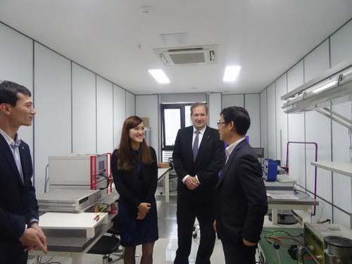 2015年11月13日,德國萊茵TUV集團大中華區執行副總裁陶思騰(Thorsten Keiter)先生、德國萊茵大中華區工業服務部副總經理陳燕女士一行應邀來到南京優倍電氣總部,考察了優倍電氣技術研發中心、工程研究中心、自動化事業部、軟件部等部門,并與優倍電氣董健總經理等公司領導就開展國際間交流與合作充分交換了意見和看法,取得了令人滿意的成果。