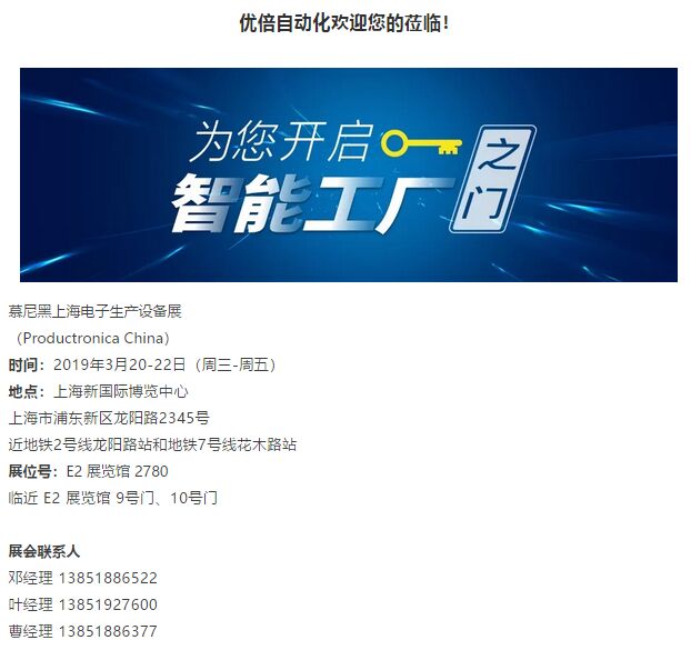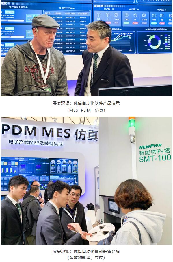 Productronica China特約展商南京優(yōu)倍自動化系統(tǒng)有限公司(簡稱:優(yōu)倍自動化)以“電子產(chǎn)線MES與裝備集”成為展示主線,基于智能制造,啟用大型電子看板、軟件使用體驗、現(xiàn)場問答、案例回顧解析等方式,向來賓全面展示優(yōu)倍MES V2.0系統(tǒng)版本所具備的八大功能模塊:物料管理、產(chǎn)品工藝、生產(chǎn)管理、質(zhì)量管理、設(shè)備管理、可視化管理、信息集成、系統(tǒng)管理。