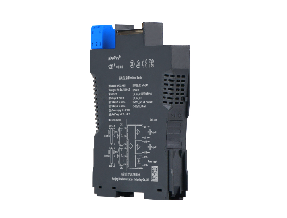 溫度型輸入安全柵,將危險(xiǎn)區(qū)的熱電偶、熱電阻信號(hào),經(jīng)隔離轉(zhuǎn)換為4~20mA電流信號(hào)輸出到安全區(qū)(其他輸出信號(hào)類型產(chǎn)品,具體型號(hào)見型譜),外置冷端補(bǔ)償端子。該產(chǎn)品輸入、輸出和電源三端隔離,具有在線故障自診斷功能,可以通過PC端或手持編程器對(duì)溫度量程、信號(hào)類型等進(jìn)行組態(tài)設(shè)置。